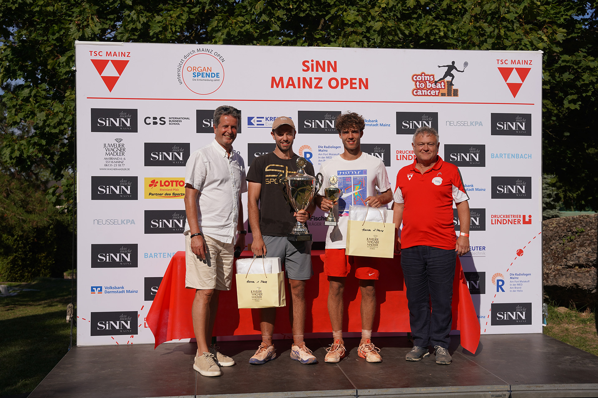 Das 10. Jubiläum der SINN MAINZ OPEN wäre beinahe vom Turniersieg des gebürtigen Mainzers und beim TSC ausgebildeten Mika Lipp (DTB 90) gekrönt worden. Nachdem er zur Freude der rund 2500 Zuschauer an den drei Tagen im Viertelfinal erst Titelverteidiger Jonas Pelle Hartenstein (TC Blau-Weiss Berlin, DTB 41) mit 7:6 6:1 ausschaltete, bezwang er im Halbfinale auch den an 4 gesetzten Luca Matteo Sobbe (TC Steinhorst, DTB 49) in zwei Sätzen (6:3, 6:4). In einem umkämpften Finale musste sich der für Eintracht Frankfurt spielende Lipp nach drei Sätzen Marcel Zielinski (TC Parkhaus Wanne-Eickel, DTB 87) mit 6:1, 1:6 und 4:6 geschlagen geben. „Ohne parteiisch zu sein, aber wir hätten es dir so sehr gegönnt“, gab Turnierdirektor Hans Beth bei der Siegerehrung augenzwinkernd zu.