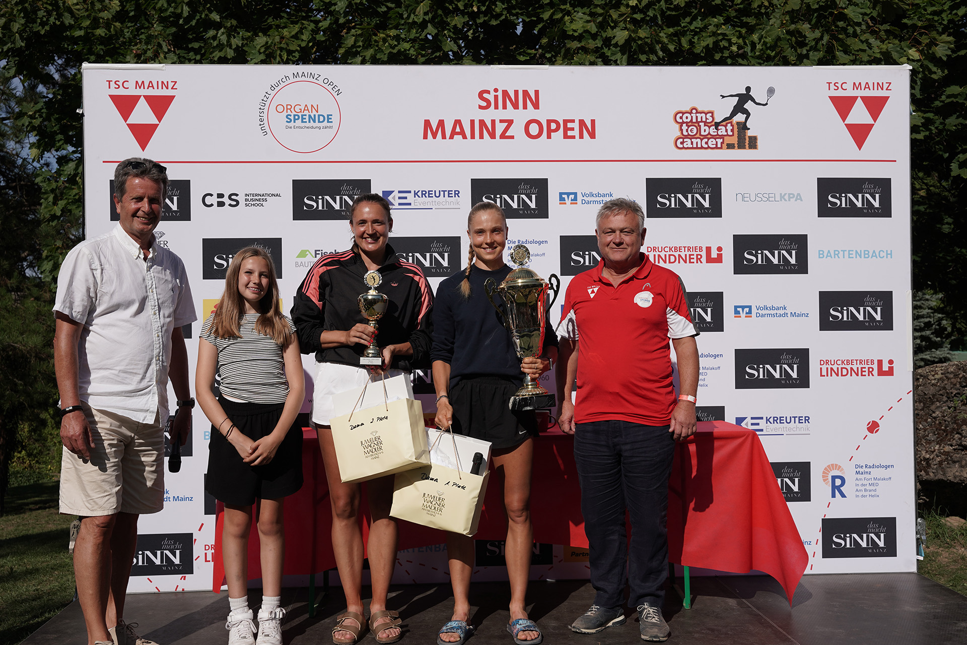 Aber auch dem Nachwuchs wurde im Rahmen der 10. SINN MAINZ OPEN wieder eine Bühne gegeben. In 4 Konkurrenzen der U12 und U14 kämpften insgesamt 54 Jugendliche um die Titel, darunter auch einige TSC-Nachwuchsspieler. „Die Jugend ist uns ein großes Anliegen und wir möchten den Jugendlichen eine Bühne bieten sich auf höchstem Niveau zu messen“, sagte Beth im Vorfeld. Bei den U12 Juniorinnen setzte sich die Topgesetzte Paula Smith (TC Bad Homburg) im Finale gegen Pauline Gehre (TC GW Idstein) mit 7:5 und 6:1 durch. Bei den U12 Junioren sicherte sich Tarys Hallas (TC Blau-Weiß Homburg) den Titel. Die Konkurrenz der U14 Juniorinnen entschied die Favoritin Vivien Gipp (TC BW Wiesbaden), die auch an der Damenkonkurrenz teilnahm, für sich. Bei den Jungs triumphierte Gabriel Rohleder (TC Dettingen-Wallhausen), der vom ehemaligen SINN MAINZ OPEN Sieger René Schulte trainiert wird.
